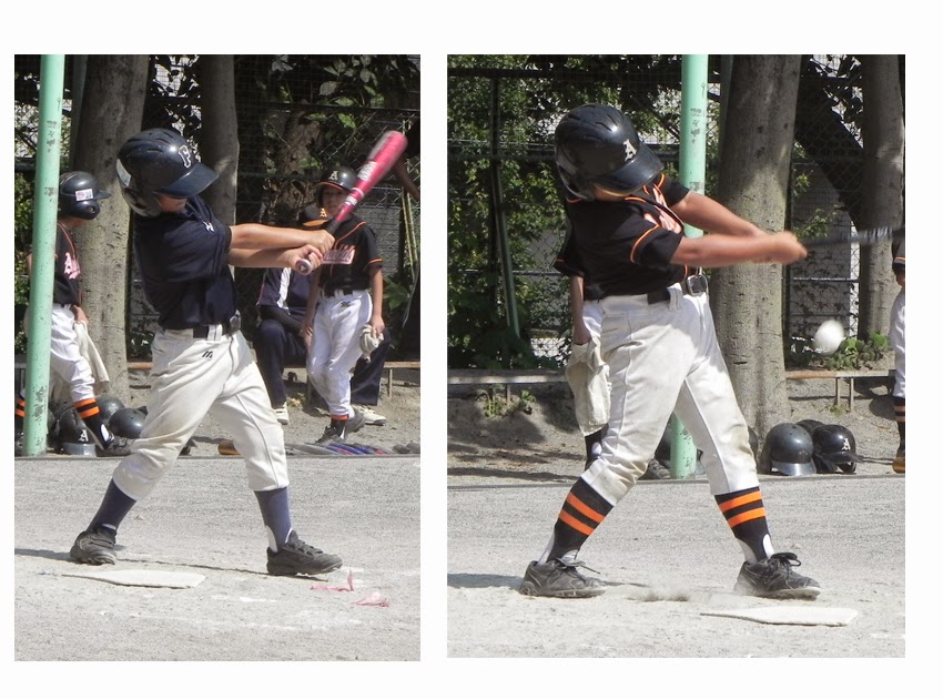 ゼロ行進のまま3回裏Bの攻撃では1得点後、四球失策で歩いたランナーで塁は全て埋まった。6番センターのSuzukiくんが低めのボールをすくいあげるように強振するとボールは高々と舞い上がり、レフトオーバー体育倉庫屋根を直撃の満塁弾。5:0。